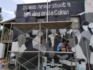 The first phase of this CUEP project is now complete with the creation of a powerful learning artifact: a stunning mural representing the 1960 Sit-Ins and Ax Handle Saturday on The Eastside Brotherhood building. This mural memorializes this powerful story and the youth leadership that made it happen, while honoring the Historic Eastside community.